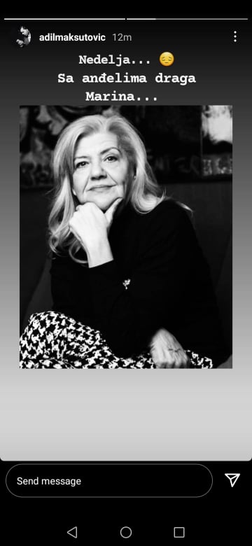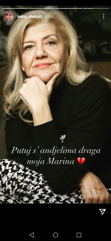 - Lepa i dobra naša... Za odlaske uvek nedostaje pravih reči, a posle tebe nedostajaće toliko toga. Od ničeg si stvarala sve. S tobom su obični razgovori bili poezija i niko kao ti nije umeo tugu tako lepo ispričati i sreću pojačati na još više. Lepa i dobra naša... Odmori se. Lavovska je bila borba. Umorila si se i ti. Ali, ne brini, tvoja vrednost neće izbledeti ni za sto života. Hvala ti za svaku napisanu reč i pesme koje će živeti umesto nas. One su tvoj pečat, a koliko si ih samo napravila... Umetnice vaserijska! Divna osobo i prijatelju... Ni slutio nisam da će biti baš ovoliko teško... Počivaj u miru, draga Marina - napisao je ispod fotografije Saša Matić.