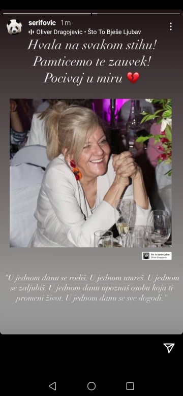 - Sipajte mi još jedan viski, jer srušio se sav moj svet.... Zauvek ćeš nedostajati. Zauvek ću pamtiti tvoj osmeh mila moja Maki. Zauvek ću iščekivati tvoje nove brilijantne tekstove, jer ne verujem da te više nema. Takvi kao ti su besmrtni. Voli te beskrajno tvoj Babare! Nek ti je večna slava, i hvala ti za sve - napisao je Željko Samardžić.