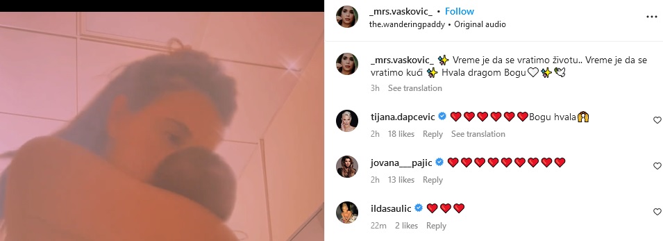 - Vreme je da se vratimo životu. Vreme je da se vratimo kući. Hvala dragom Bogu - napisala je Aleksandra u opisu videa u kom u rukama drži ćerkicu Helenu.