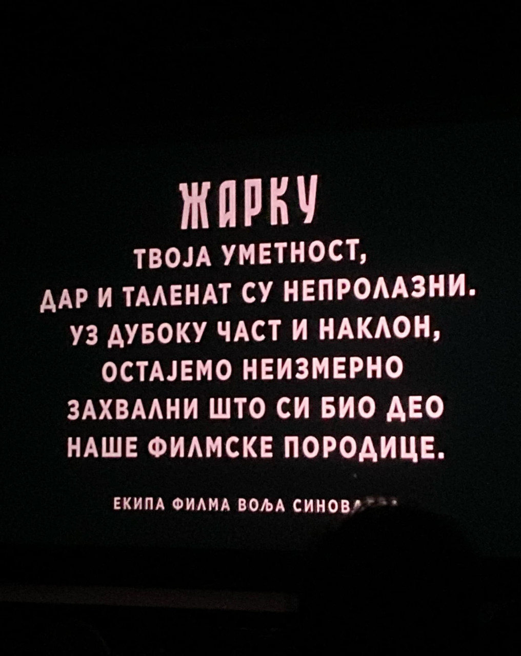 - Žarku, tvoja umetnost, dar i talenat su neprolazni. Uz duboku čast i nakon, ostajemo neizmerno zahvalni što si bio deo naše filmske porodice - navodi se u poruci koju potpisuje ekipa filma "Volja sinovljeva".