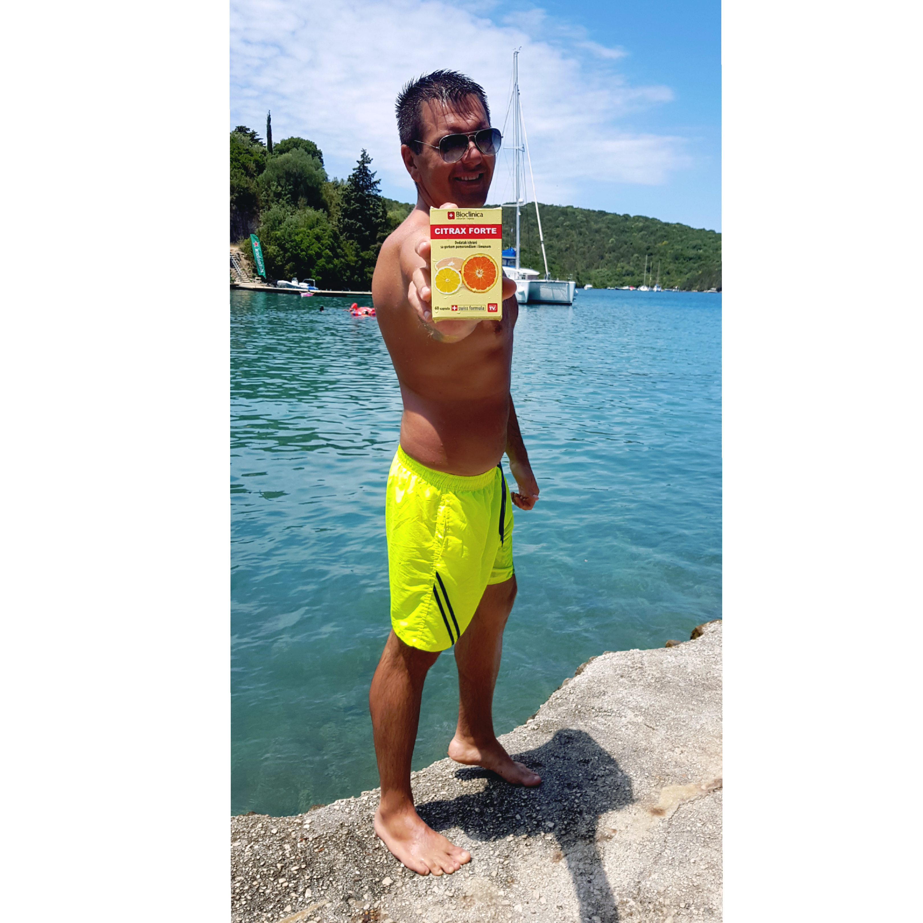 Bojan: Ono što mi se pre svega dopalo je što je Citrax Forte prirodan proizvod. Sadrži sok od gorke pomorandže, vitamin C i limun. Bez gladovanja i iscrpljujućih dijeta, bez preterane fizičke aktivnosti, sa dve kapsule Citrax Forte dnevno uspeo sam da za kratko vreme dobijem rezultat. Mogu da kažem da sam najsrećniji čovek na svetu što sam otkrio ovaj preparat. On je postao deo mog svakodnevnog života. Uz pomoć Citraxa Forte sam skinuo 30 kilograma i potpuno promenio svoj fizički izgled.