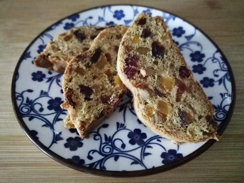 Prvo se na sitne kockice isecka suvo voće. Kruška se oljušti i isecka na kockice. Orasi se iseckaju grublje, na veličinu kruške i suvog voća.