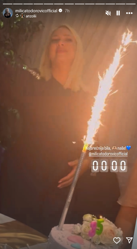 Na snimku koji je podelila na društvenoj mreži Instagram se vidi kako duva svećice uz vatromet na torti, dok joj okupljeni pevaju rođendansku pesmu.