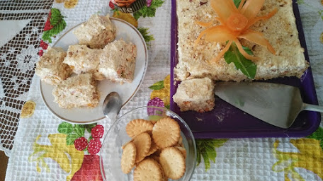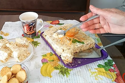 Tortu možete ukrasiti kao što je u videu prikazano...Tortu napraviti 1-2 dana ranije da krekeri upiju i da se torta stegne. Seći na kocke, a ovo brza i jednostavna torta može poslužiti kao pređelo za posne slave.