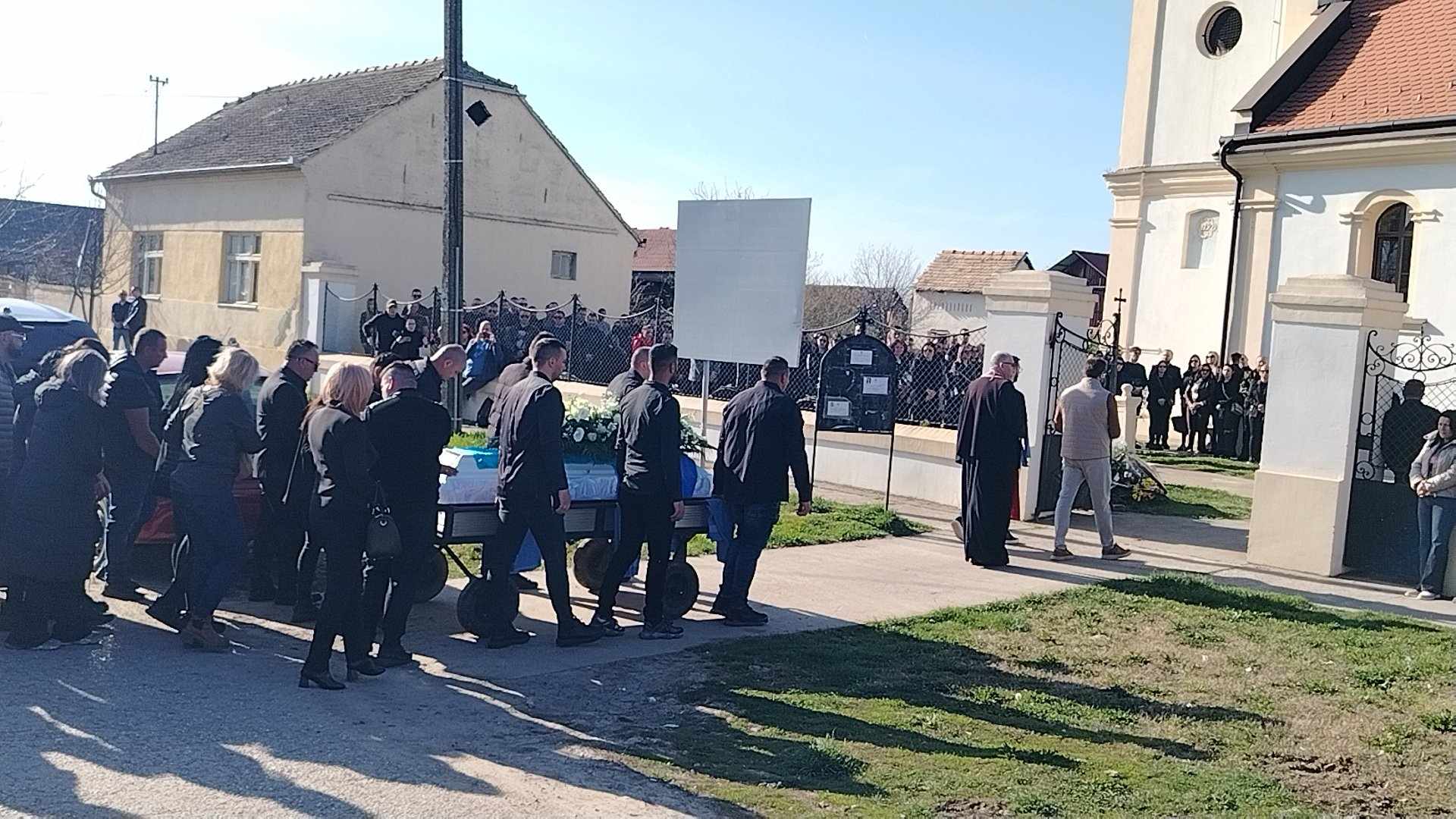 Povorka se zaustavila kod seoske crkve gde je održano opelo koje su držala dva sveštenika.