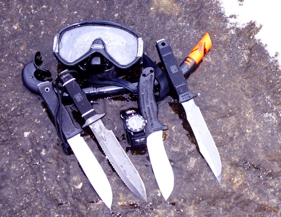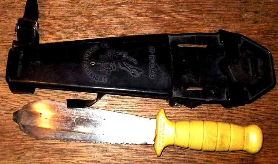 Ipak, nijedan deo opreme, to vreme, ne definiše bolje od ronilačkog noža veličine bajoneta i svako ko je držao do sebe nije ulazio u vodu, bez ovog oružja za masovno uništenje, prikačenog za nogu. Sada je oprema živih, upadljivih boja, a staromodni ronilački mačevi, dobili su alternativu u laganim, kompaktnim modelima, neretko izrađenim od titanijuma koji se kače na bilo koji deo opreme.