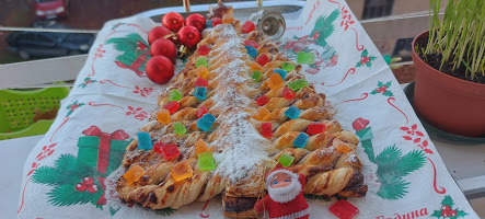 Iseći malu zvezdu i staviti u vrh. Premazati žumancetom. Peći na 220 stepeni C oko 25 min.