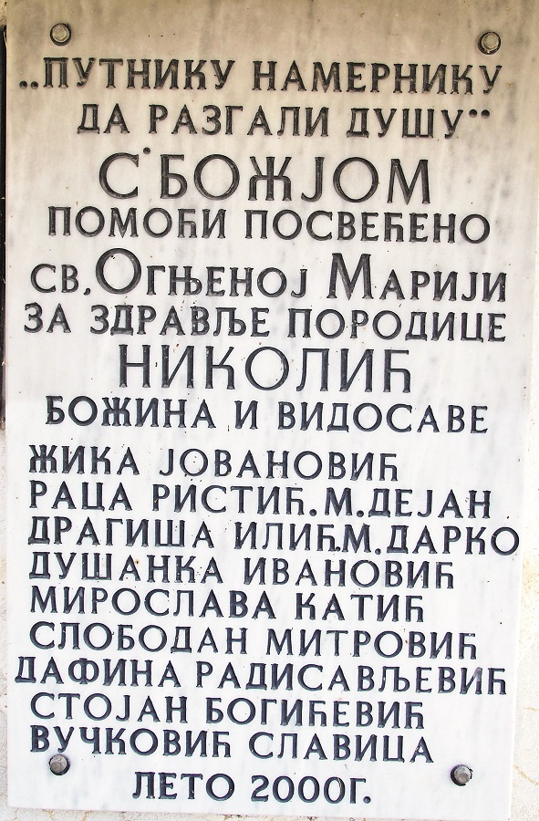 - Sada pokojna Vidosava Nikolić u snu je dobila poruku da treba da obnovi lekovitu vodu, jer ona potiče iz oltara Crkve Ognjene Marije, koja se nalazi na bregu iznad nje. Svi smo bili u čudu, jer niko nije znao za tu crkvu.