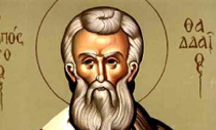 Sveti Tadej je prvo video i čuo Jovana Krstitelja, i primio krštenje od njega, a potom je video Gospoda Isusa i počeo da ga sleduje.