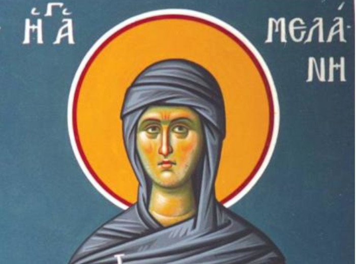 Sveta Melanija je hrišćanska svetiteljka. Rođena je u Rimu od roditelja blagočestivih i vrlo bogatih. Prisiljena od roditelja, stupila je u brak s nekim znamenitim mladićem Apinijanom. Rodivši drugo dete ona se teško razboli, i reče mužu svome, da će ozdraviti samo tako, ako se on zakune pred Bogom, da će ubuduće s njom živeti kao brat sa sestrom. Muž se zakle, i Melanija od duhovne radosti i telesno ozdravi. Pošto bi Bogu ugodno, da im uzme oboje dece, to se oni reše, da rasprodadu sva svoja imanja i rastoče na uboge, na crkve i manastire.