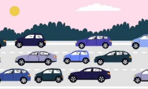 Kako bi mozgalica bila još izazovnija, na fotografiji se vidi šest saobraćajnih traka i automobili koji voze u dva smera. Vozila su različitih boja, neka sa troja, neka sa petoro vrata.