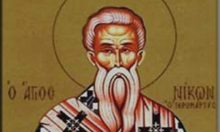 Sveti Nikon je bio rimski oficir, koji se spasao u boju tako što se prekrstio i pomolio Bogu, od tada njegov život se menja i sve posvećuje veri.