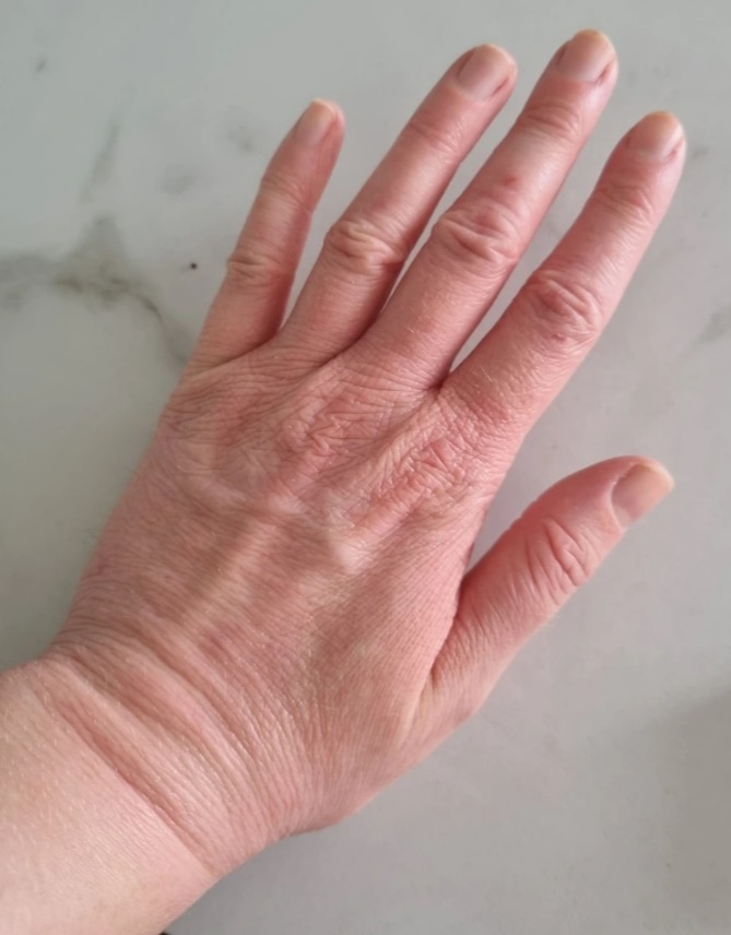 „Šesnaest meseci bez upotrebe, moja koža se prilično vratila u normalu osim mojih ruku. Vidite efekat preranog starenja, ali to bi trebalo da se promeni vremenom sada kada više ne koristim kreme."