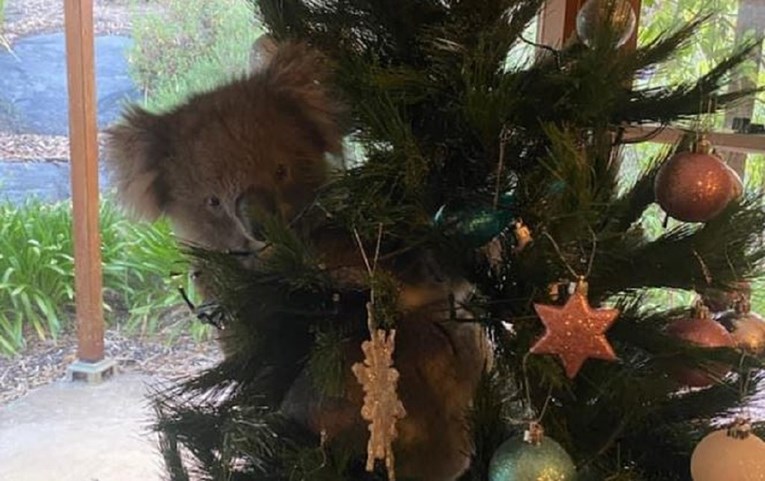 Preslatka koala ušetala je u dom Amande Mekomik nakon što je njena ćerka ostavila vrata otvorena. Smestio se na novogodišnju jelku, a Amanda je pozvala organizaciju za spašavanje koala nakon što je primetila neobičan božićni ukras.