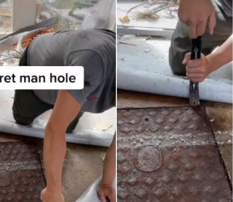 nakon šro su uklonili postavljeni tepih, bračni par je pronašao šaht ispod kojeg su odavno postavljene odvodne kanalizacijske cevi.