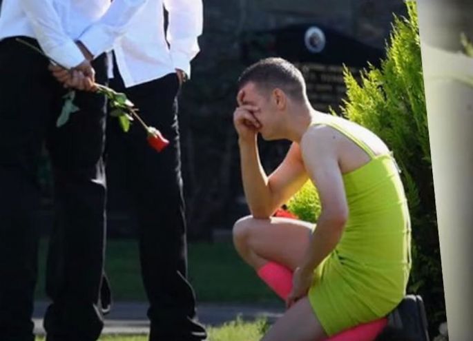 Šaljivo obećanje nije zaboravio, pa je pre odlaska na sahranu obukao najružniju haljinu koju je mogao da pronađe. Kombinaciji je dodao i ružičaste čarape.