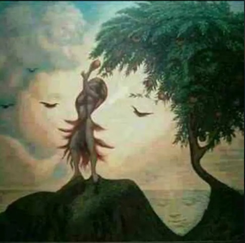 Gledaoci bi na umetničkom delu trebalo da vide mirno lice, osobu koja bere voće, mamu i dete, ptice koje lete i lice čoveka.