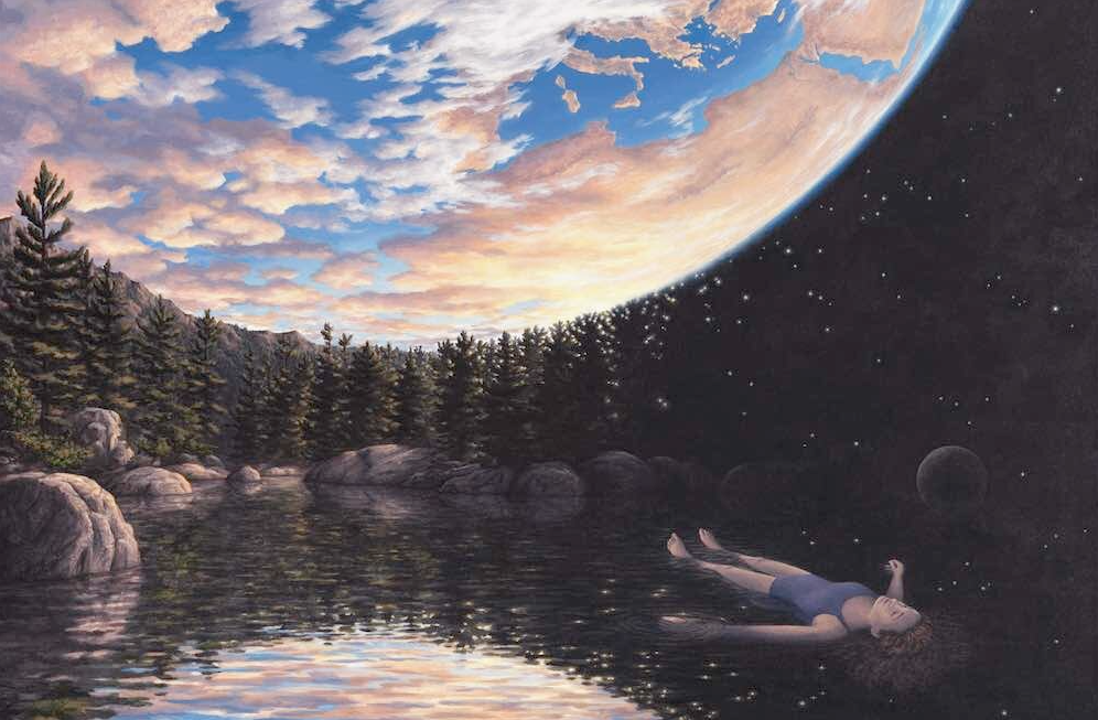 Optička iluzija prikazuje ženu koja se opušta u jezeru, okružena šumom i nebom, ali neki su primetili da nebo izgleda kao Zemlja.