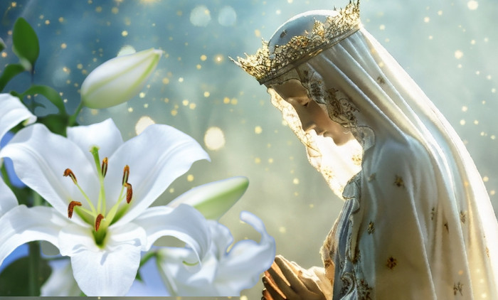 Reč je o belom ljiljanu, odnosno krinu. Beli ljiljan simbolizuje bezgrešnu čistotu i nevinost, a njegove tri latice asociraju na kult Svetog trojstva. Veruje se, takođe, da svaka latica ljiljana oslikava tri najvažnije osobine Device Marije - nevinost, skromnost i pobožnost.