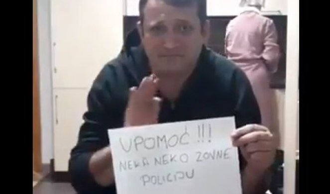 Snimio je videou kom priča kak provodi divno vreme sa svojom ženom, dok mu ona sve vreme dobacuje šta treba da uratu. U isto vreme sve vreme okreće papire u rukama, na kojima moli ljude za pomoć, jer mu je žena "poludela".