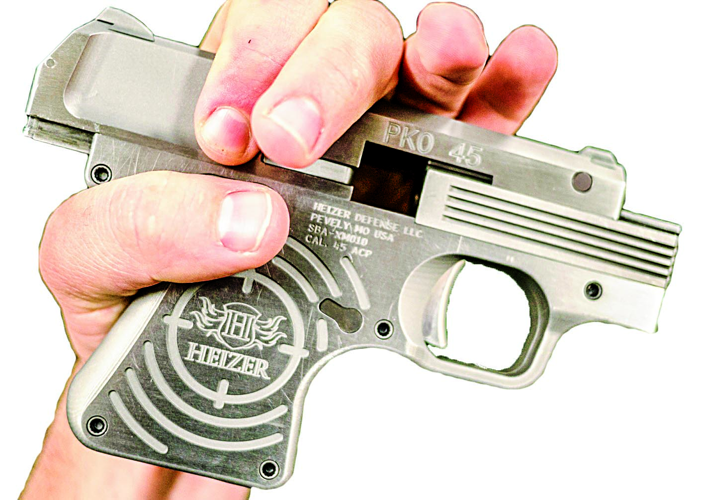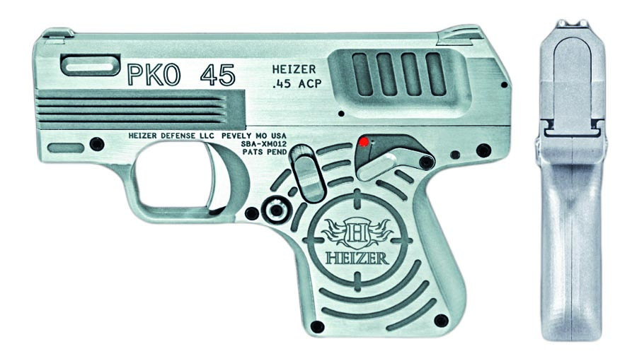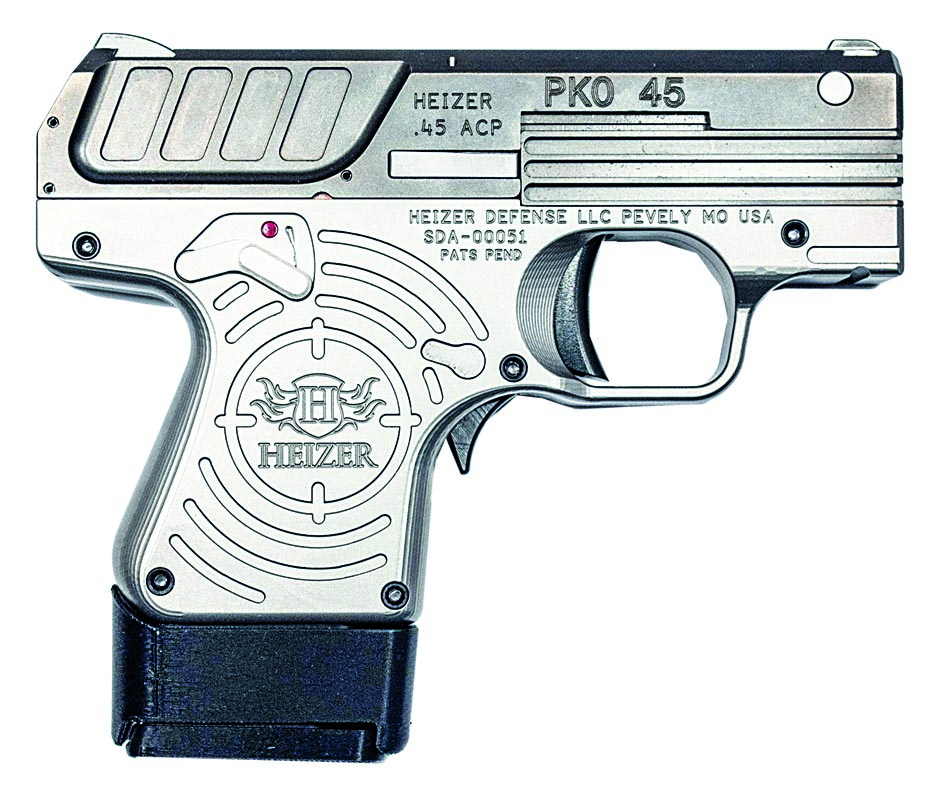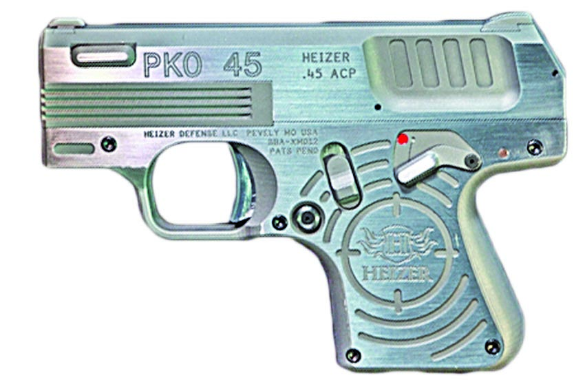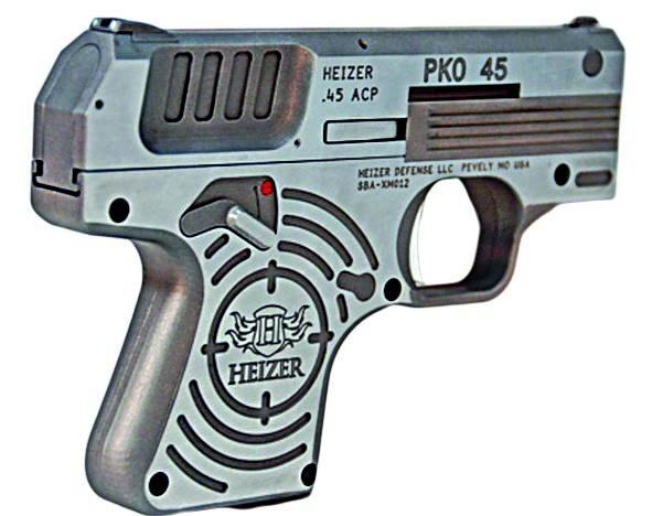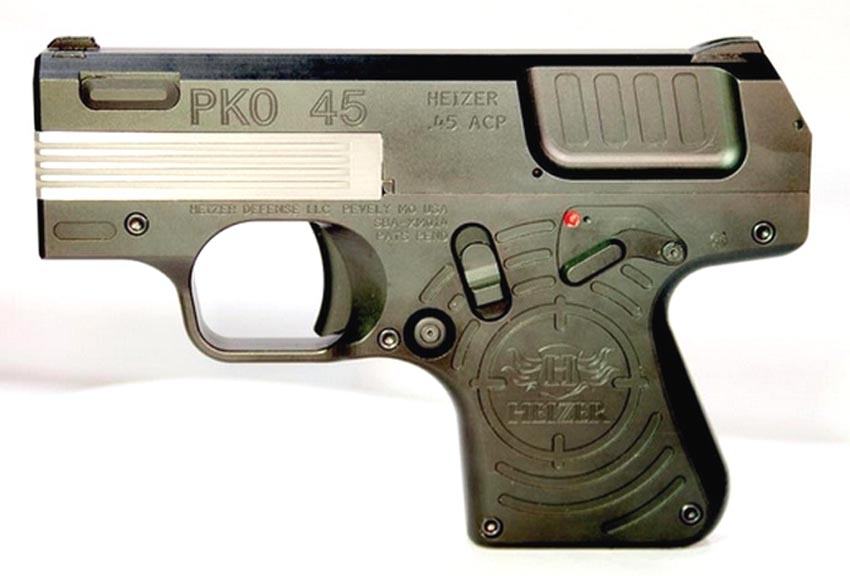 Mašinski inženjer Čarli Hejzer godinama osnovao je “Heizer Defense” za proizvodnju streljačkog oružja. Osnovnu ponudu čine kompaktni, jednometni modeli sa prelamajućim mehanizmom i širokom ponudom kalibara koji slede ideju popularnih modela Derindžer. Ali pre nekoliko godina Hajzerov sin Tom je došao na ideju da naprave poluautomatski pištolj sa minimumom pokretnih delova u snažnom kalibru i sa najmanjom mogućom širinom. Umesto više meseci istraživanja i kompjuterskog modelovanja, osnova dizajna postavljena je za nekoliko minuta, hemijskom olovkom za stolom restorana u Hjustonu. Gruba skica postala je model PKO-45.