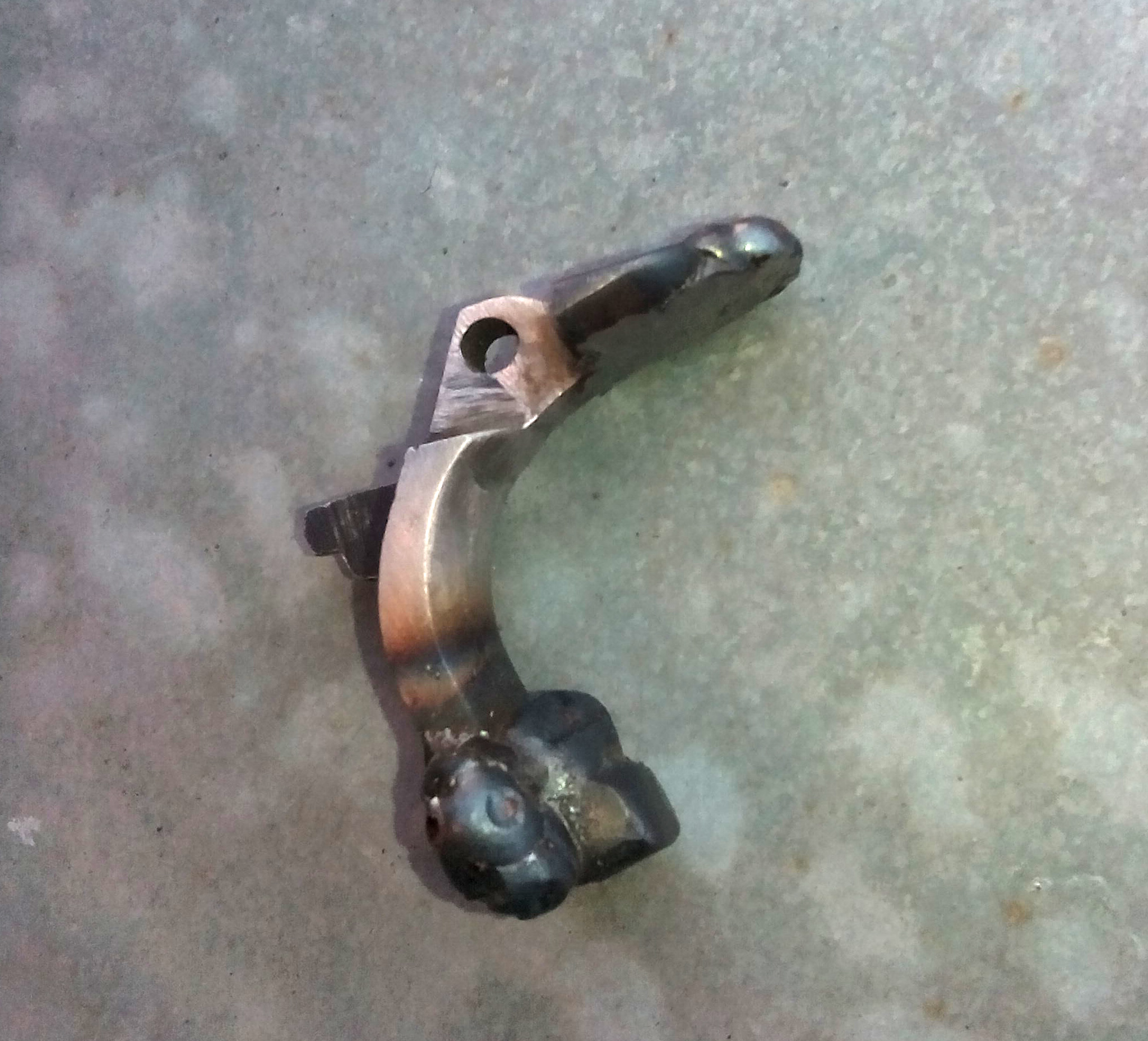 Odlučio sam da modifikujem postojeću aktivnu kočnicu koja. Prijatelj, vrlo iskusan puškar i varilac je odradio svoj deo posla tako što je navario novi rep i "grbu" za dlan. Naravno, posle grube obrade i početnog upasivanja bilo je potrebno ponoviti navarivanje sa CO2 aparatom i "iskušavati" prijateljstvo. I tako više puta... Ali dobijeni rezultat je bio više nego dobar i što je najbolje, sačuvao sam prijatelja. Odlično! Isti majstor je uradio i "nabacivanje" materijala na ručnu kočnicu, tako da nije bilo potrebe naručivati posebnu, što je donelo i određene uštede, iako to nije bio primarni cilj.