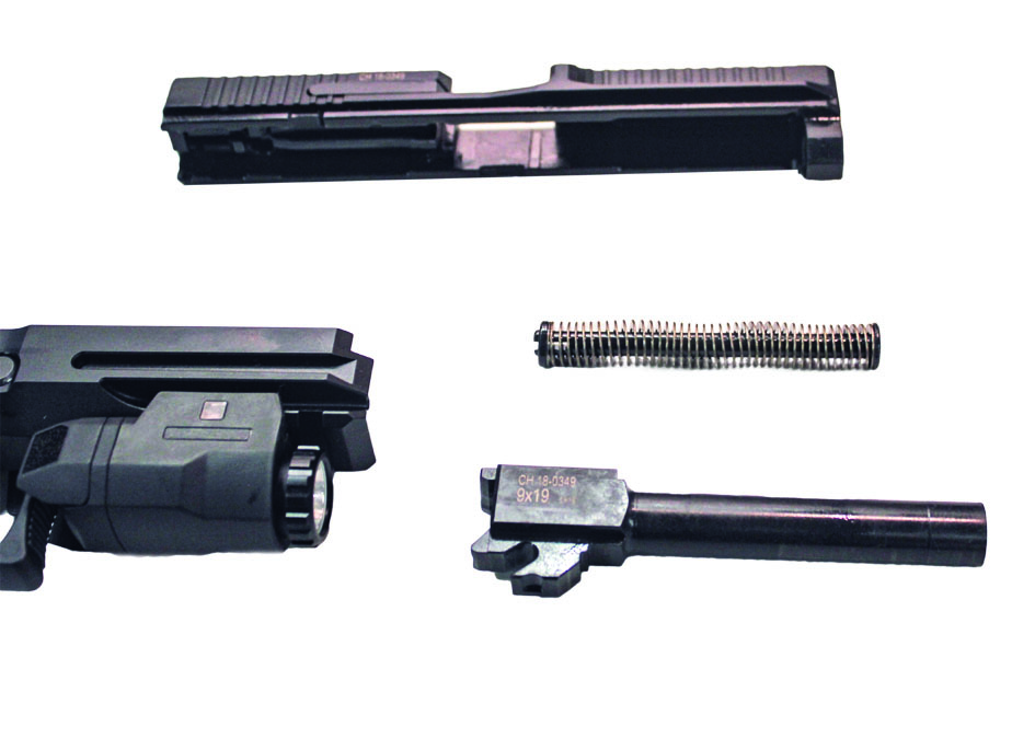 Dugme za izbacivanje okvira može da se premesti sa leve na desnu stranu. U prednjem delu rama je Pikatini šina za montažu taktičke svetiljke sa laserskim obeleživačem, a poluga za rasklapanje ima neuobičajeno velike dimenzije i čudan, trouglast oblik. Okidač sa integrisanom polugom osigurača (poput Gloka) definitivno je najbolji od svih strike-fired (sa unutrašnjim udaračem) pištolja, koje sam do sada imao prilike da isprobam. Niskoprofilna navlaka je radi sigurnije manipulacije dobila nareckane površine za repetiranje i u prednjem delu kao i odlične široke, jasno vidljive borbene nišane.