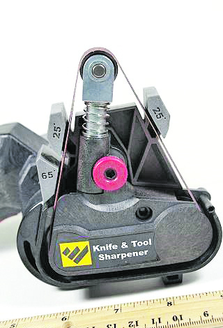 Što se same operacije oštrenja tiče, toliko je jednostavna da praktično svako ko je u stanju da uključi uređaj u struju i drži nož u ruci, može da dobije oštro sečivo. Kao prvo, potrebno je izabrati odgovarajuće vodište, odnosno ugao oštrenja. Kako se ovi uređaji uglavnom koriste za samo jedan tip sečiva, jasno je da će jednom postavljeno vodište tu trajno i ostati. Sečivo postavimo u odgovarajući prorez, spustimo ga do kraja i bez velikog pritiskanja, oslonimo bočno na vodište, pustimo motor u rad i ravnomernim potezom povučemo sečivo preko kaiša. Poželjno je da motor ugasimo u onom trenutku kada je vrh noža još uvek na kaišu. Na taj način neće dolaziti do preteranog trošenja vrha, odnosno njegovog zatupljivanja.