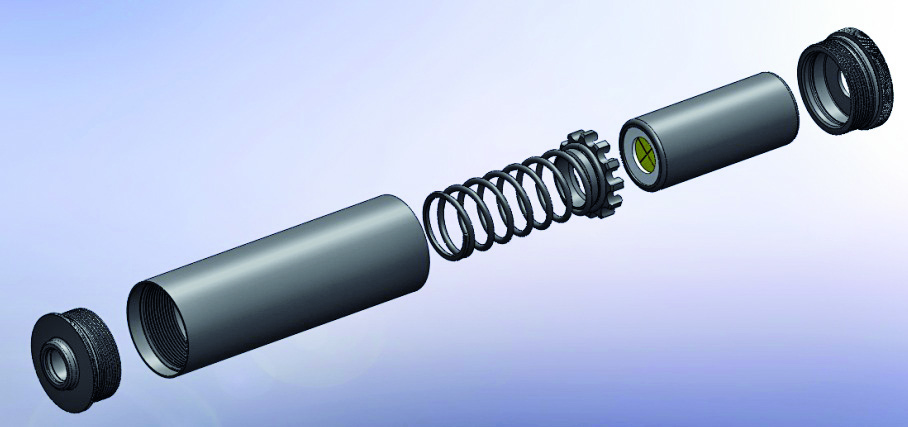 U svakom slučaju priča je izuzetno jednostavna. U pitanju je tzv. konstrukcija tipa "prigušivač unutar prigušivača". U telo dužine 127 mm i prečnika 36 mm, smešten je prigušivački modul, koji je urađen krajnje jednostavno. Relativno je kratak, a njegov spoljašnji prečnik je znatno manji od unutrašnjeg prečnika tela prigušivača. Na taj način se praktično dobija produžena ekspanziona komora. Unutar samog modula se nalaze četiri diska od uretana određenih mehaničkih karakteristika, razdvojenih pomoću prstenastih segmenata. Modul se učvršćuje unutar spoljne obloge u dve tačke. Sa prednje strane je to poklopac sa O ringom, u kojeg ulazi deo modula, a sa zadnje strane profilisani potiskivač, kojeg u tom položaju drži relativno jaka opruga. Ova opruga se svojim zadnjim delom oslanja na zadnji poklopac, koji ujedno služi i kao montaža za cev