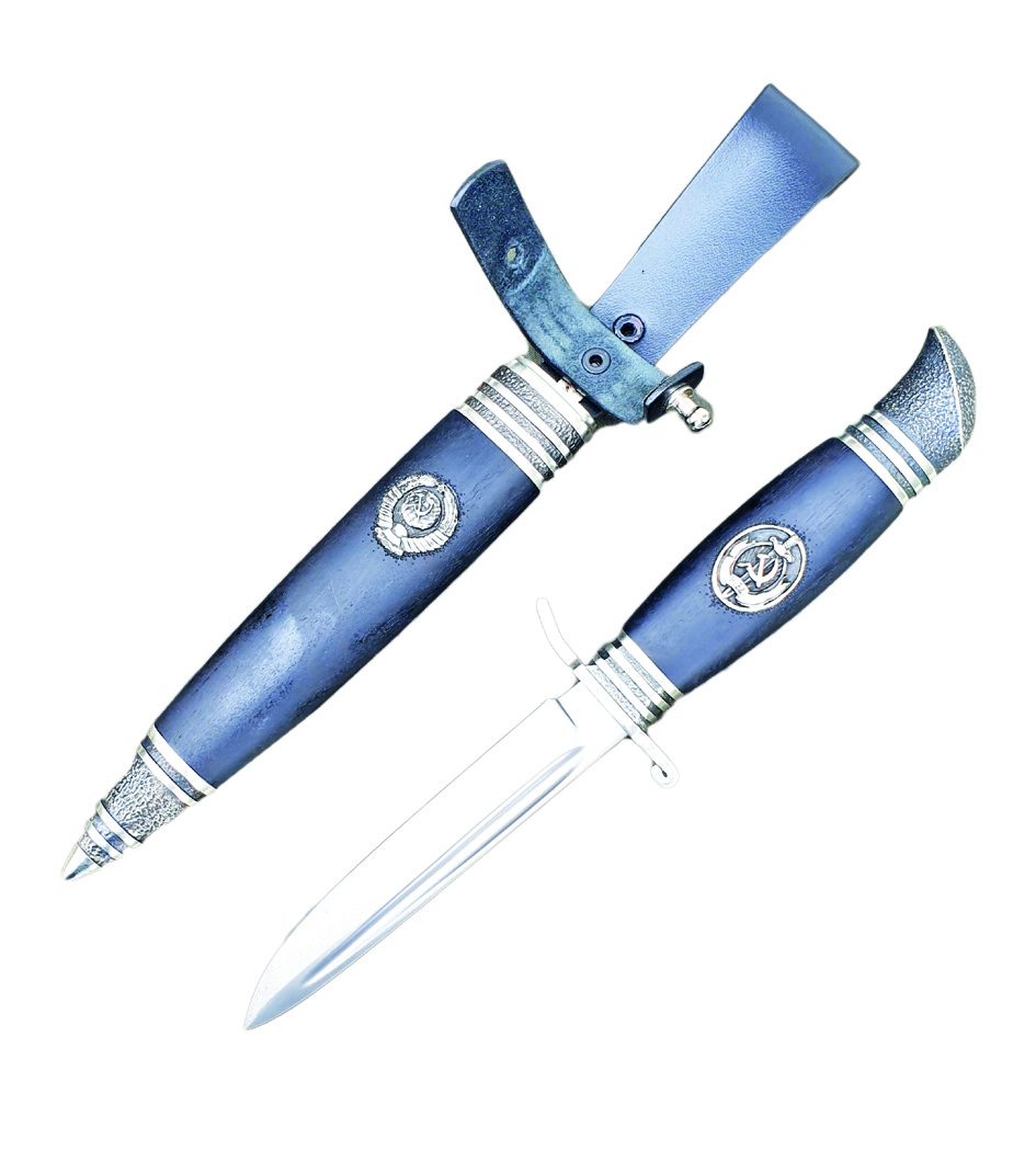 Prvo što upada u oči je da je sečivo urađeno od bulatčelika. Savremena verzija lako postiže tvrdoće i preko 62 Rokvela uz zadržavanje visoke žilavosti za tako ekstremnu tvrdoću. Štitnik za prste i završetak su urađeni od nerđajućeg čelika i po obliku su bliski originalu, iako je, naravno i on dobio određene de luks karakteristike. Drška je drvena i na njoj je sa puno pažnje ugrađen “štit i mač”, odnosno grb nekadašnjeg NKVD.