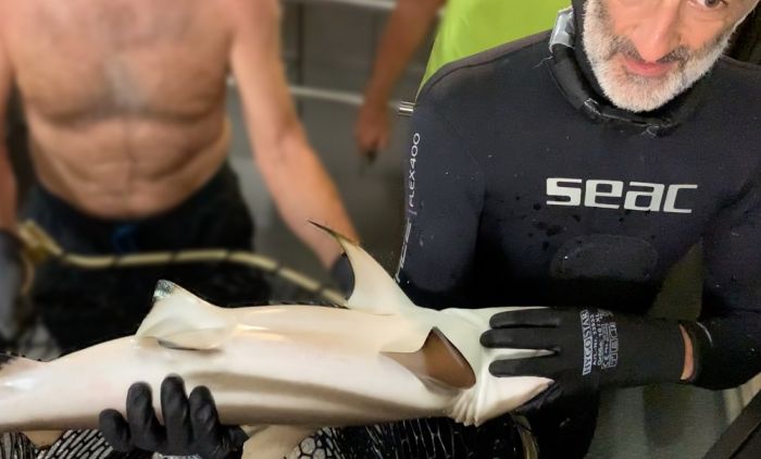 Da bi sve dobro prošlo i kako životinja tako i negovatelji ostali nepovređeni primenjena je neka vrsta hipnoze da bi se morski pas umirio. Pritom je aktiviran imobilizujući refleks koji nastaje dodirom njuške.