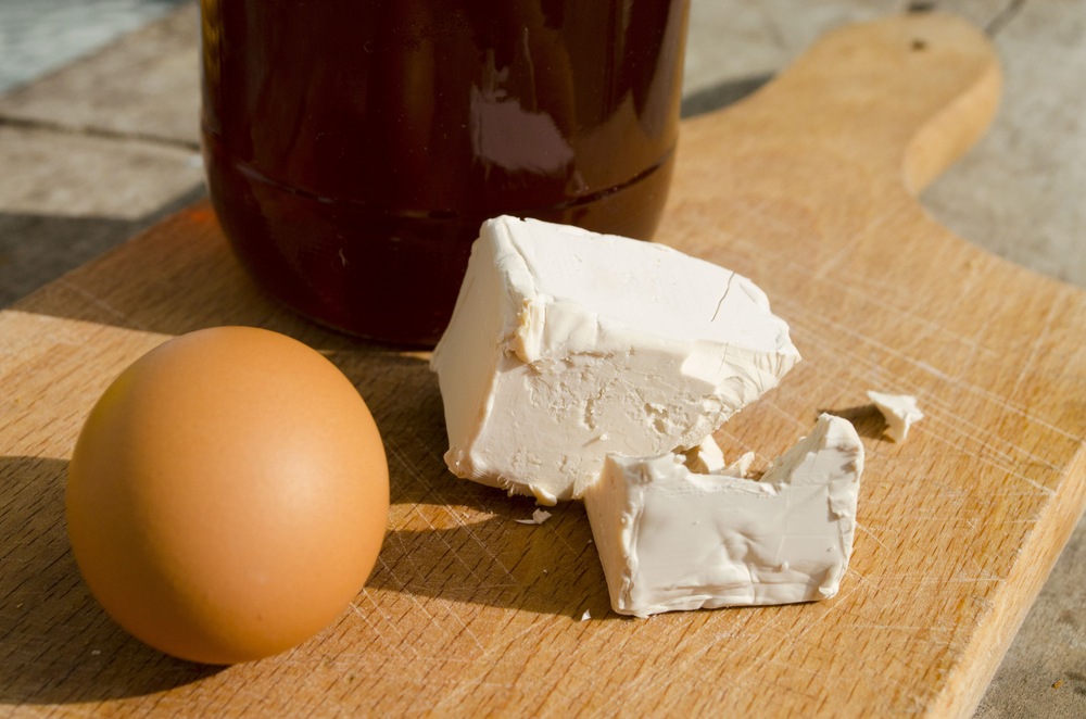 Potrebno je da jedno belance umutite u čvrst sneg, u koji ćete dodati kockocu kvasca koju ste prethodno rastopili sa malo mleka ili jogurta.