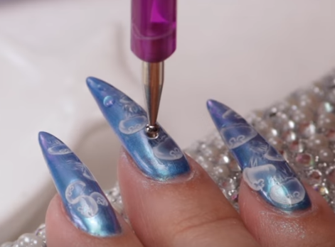 Dodatni mehuri, koji će stvoriti podvodnu iluziju prave se silikonom. Tufnice se naizmenično nanose na nokte metalnim štapićem sa lopticom na vrhu.