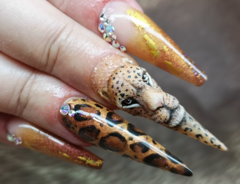 Najteže se pravi nokat poput glave leoparda. Naime, potrebno je oblikovati ga silikonom, što traje i umeju da rade samo stručnjaci za manikir. Zbog toga je jednostavnije iskoristiti stiker leoparda.