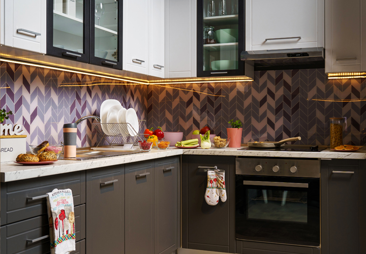 Dizajneri enterijera Forma Ideale savetuju da uz ovakav stil uklopite kuhinjsku kolekciju LIDIA koja unosi u ambijent izgled retro stila, ali svojom funkcionalnošću doprinosi i svim modernim zahtevima savremenog života. Dostupna je u kombinaciji belih korpusa sa frontovima bele mat folije i sive mat folije, a modernu notu elementima dodaju i ručice H4 i H3.