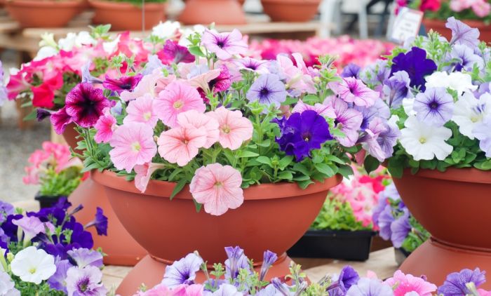 Petunije možete da nađete u skoro svim bojama osim prave plave. Imaju široke cvetove u obliku trube i razgranato lišće.