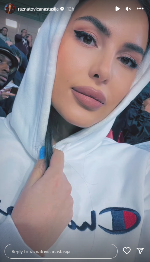 Pevačica Anastasija Gudelj je najveća podrška svom suprugu Nemanji Gudelju. Ona često deli fotografije sa njegovih utakmica na kojim ga bodri. Ono što je zanimljivo je da je ovog puta podelila fotografiju sa tribina u upečatljivom stajlingu.