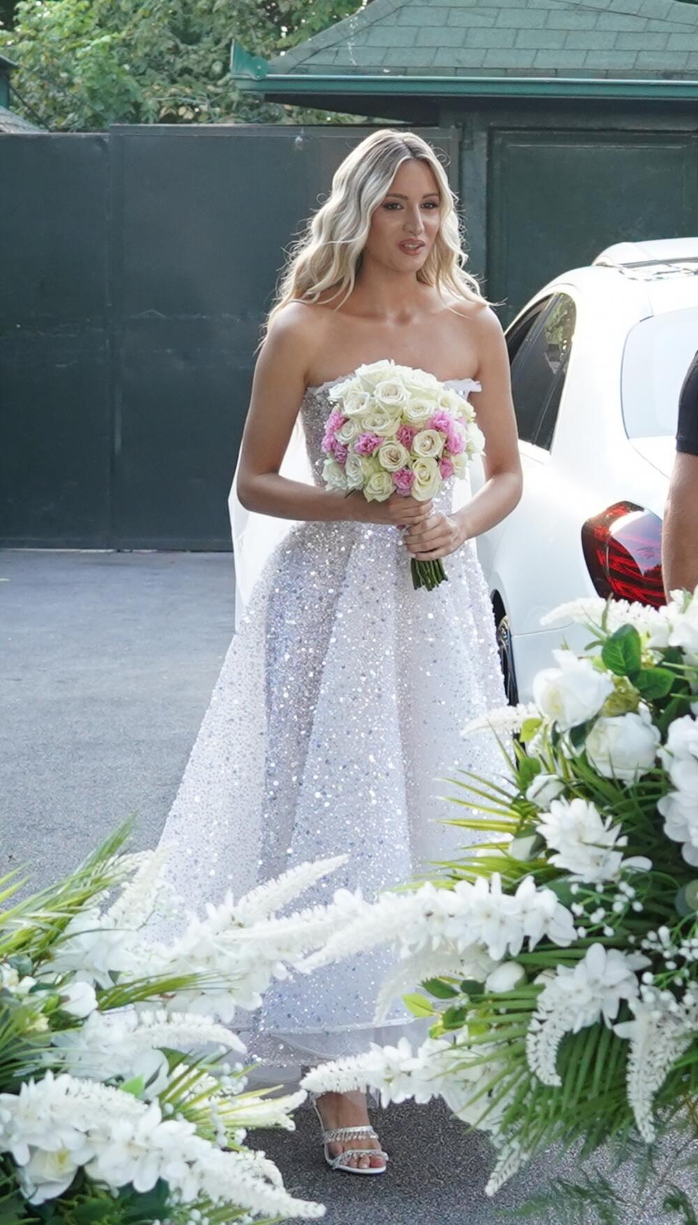 Ona je već duže vreme u vezi sa Sebestijanom, kome je danas odlučila da kaže sudbonosno "da". Milica je sijala u venčanici koja joj je idealno pristajala. Ono što je venčanici davalo posebnu čar su šljokice kojima je bila prekrivena. Ona je sečena u struku i bez bretela, a Milica se opredelila za model koji prati liniju tela.
