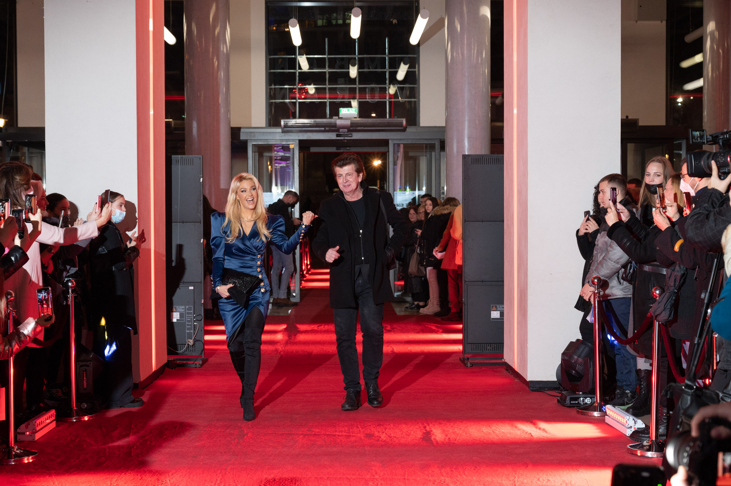 Pevačica Lena Kovačević pojavila se u satenskoj haljini plave boje, sa nezaobilaznim trendom ove sezone- puf rukavima. Uz veliku dugmad na rukavima i boku, Lena je izgledala veoma efektno. Pojavila se ruku pod ruku sa Bajagom, koji se opredelio za potpuno crnu kompinaciju, nema odevnog predmeta koji nije bio u ovoj boji.