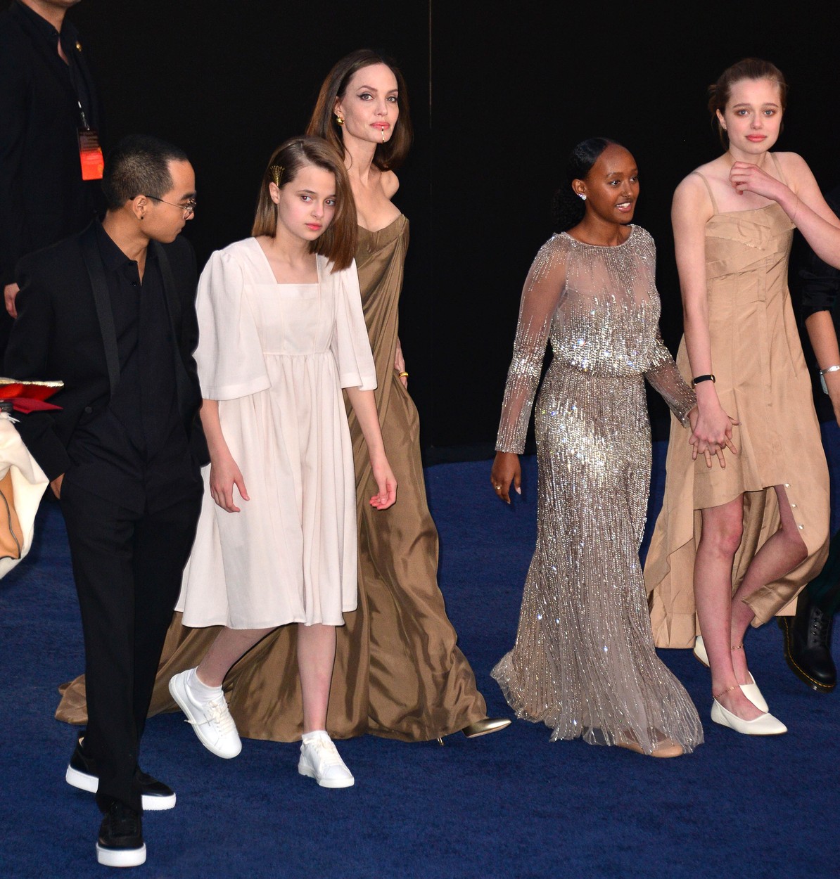 Glumica je premijeru učinila porodičnim događajem, budući da joj se pridružilo i petoro od šestoro dece na crvenom tepihu. Anđelina je stajala u sredini dok je pozirala pored Medoksa (20), Zahare (16), Šajlo (15) i 13-godišnjih blizanaca Vivijen i Noksa. Ona je takođe majka 17-godišnjeg sina Paksa, koji nije prisustvovao premijeri filma u ponedeljak uveče u LA-u.