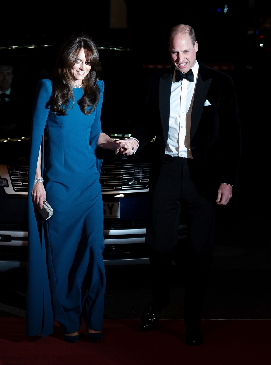 Par je bio vidno raspoložen, a na crveni tepih su došli držeži se za ruke, što ne možemo često da vidimo. Princeza Kejt (41) pojavila se u tirkiznoj večernjoj haljini koja prati liniju tela i seže do poda, naglašenih ramena i dugačkih zvonastih rukava. Već elegantan i prefinjen izgled dopunila je nakitom, a kosu je pustila da pada uz "zavesa šiške" koje joj uokviruju lice.