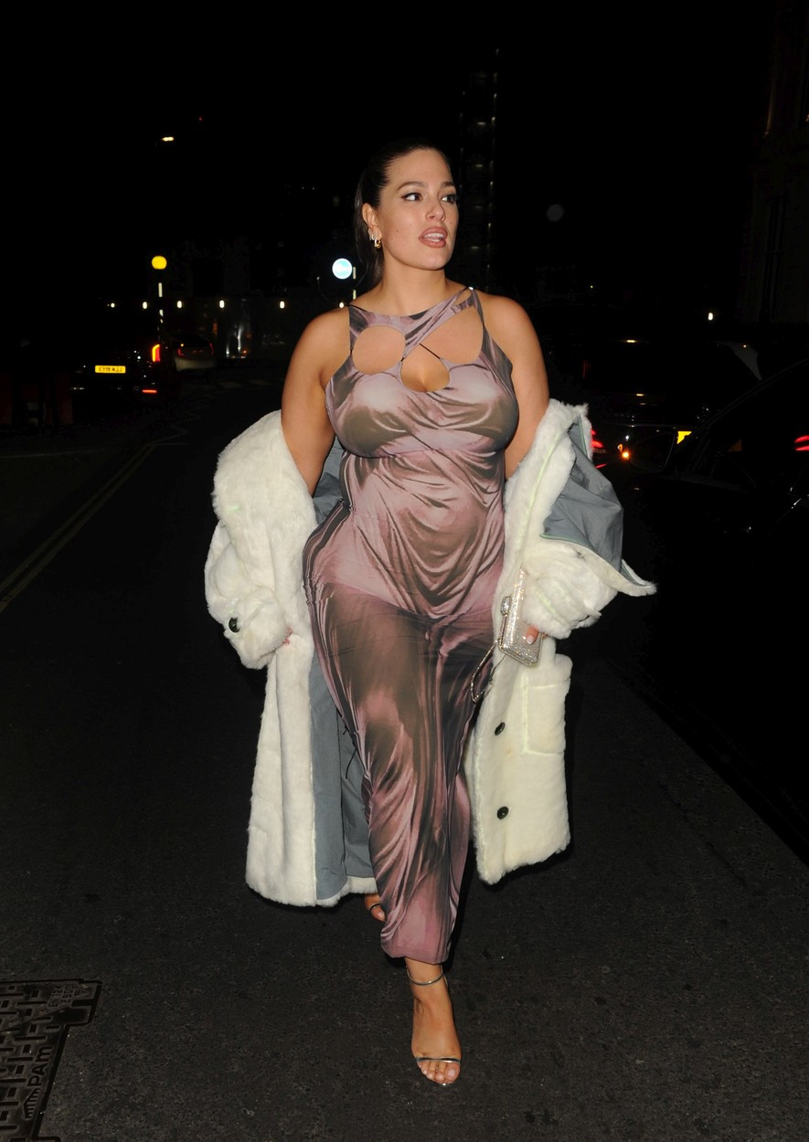 Ovoga puta Ešli se na dode satenskoj metalik svetlo roze haljini sa velikim prorezom sa strane, dok je na nogama imala otvorene sandale na štiklu. Haljinu je obukla na golo telo, ovaj stajling je uparila sa belom bundom, čime je ponovo privukla veliku pažnju svojim oblinama, koje je ponosno prošetala.
