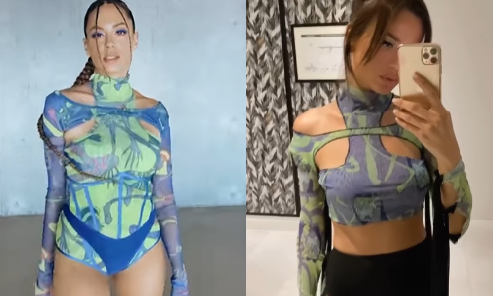 Dugi rukavi sa crnim trakama i rolka, pa ponovo providan materijal, upareni su sa nogavicama, koje su odvojene od ostatka kostima. I Milica je napravila visoki rep, ali umesto pletenice, opredelila se za frizuru koja je trenutno veoma popularna na Instagramu - niz gumica koje su na razmaku, tako da prave pufnice od kose.