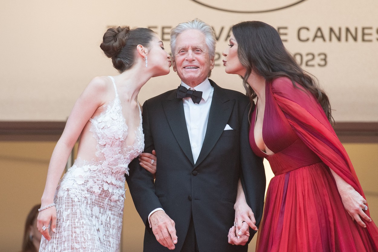 Majkl Daglas (78) i Ketrin Zita-Džouns (53) pojavili su se u Kanu na crvenom tepihu sa ćerkom Keris (20)